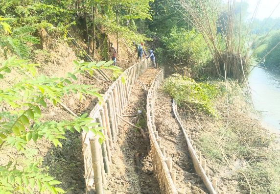 Kepala Desa Galih Muzhilin SE mengatakan, jika proses pemasangan Bronjong sungai Blukar telah rampung di titik yang rawan longsor.